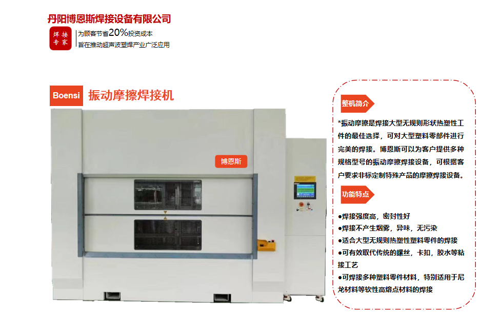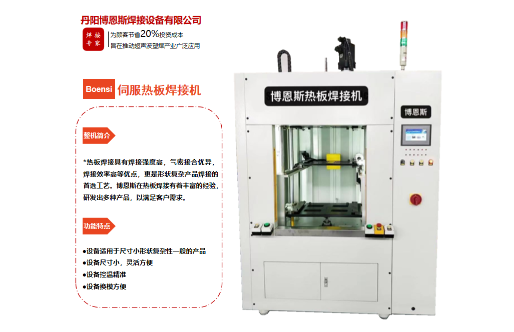 丹陽(yáng)博恩斯焊接設(shè)備有限公司是塑料焊接領(lǐng)域集研發(fā)設(shè)計(jì)、生產(chǎn)制造、銷售服務(wù)為一體的企業(yè)。公司自成立以來堅(jiān)持“以人為本”的理念,組織了一支強(qiáng)大的技術(shù)研發(fā)團(tuán)隊(duì),攜多年來積累的豐富經(jīng)驗(yàn),并結(jié)合國(guó)際先進(jìn)塑料焊接技術(shù),根據(jù)市場(chǎng)需要,不斷開發(fā)具有核心競(jìng)爭(zhēng)力的新產(chǎn)品。公司具有很強(qiáng)的非標(biāo)機(jī)械研發(fā)、設(shè)計(jì)、生產(chǎn)能力,可為廣大客戶定制各類專用機(jī)械設(shè)備。公司設(shè)計(jì)生產(chǎn)的塑料焊接設(shè)備已廣泛應(yīng)用于汽車、電子、家電、醫(yī)療器械、無(wú)紡布...